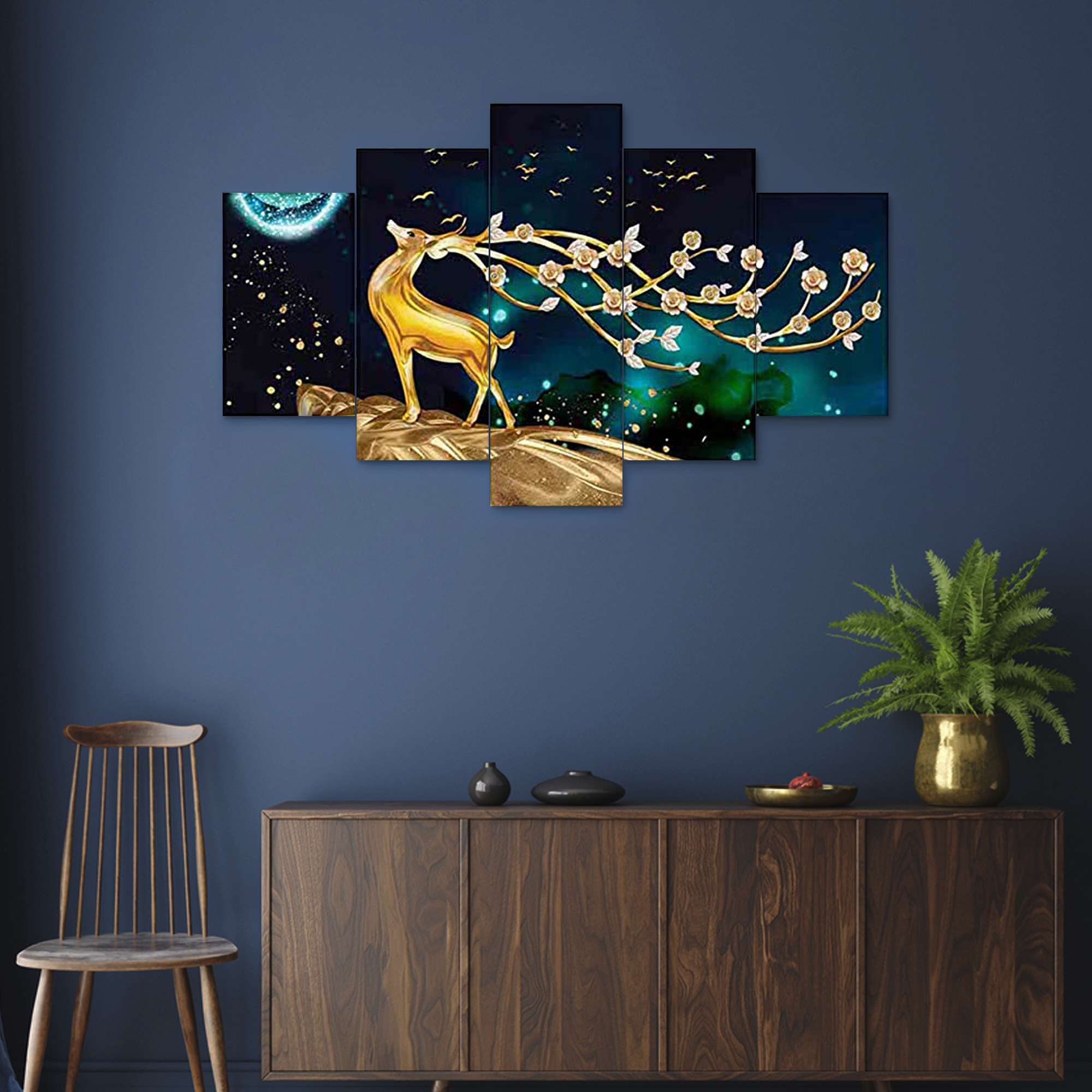 Nature Set of Five 3D Framed Paintings for Wall Decoration – Ideal for Home, Living Room, and Bedroom (125 x 60 CM)